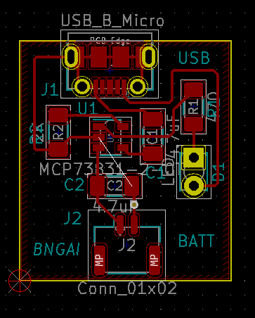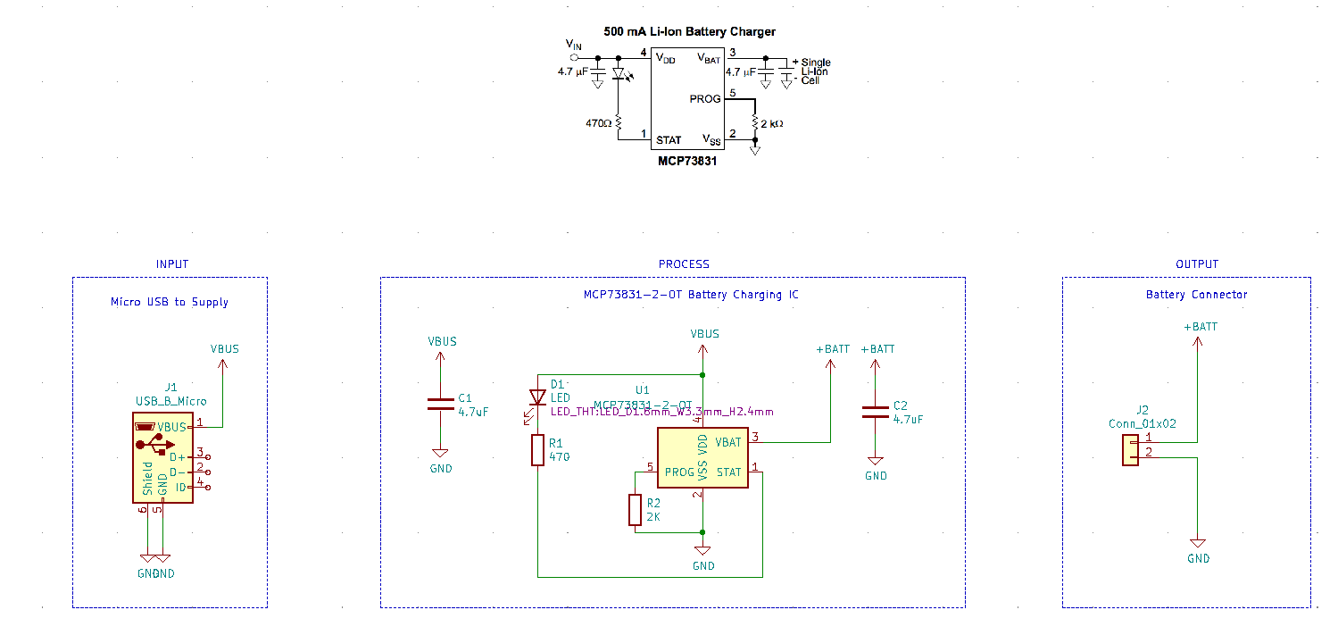 I worked on this project to gain exposure and experience with board layout and PCB design software. The goal of the project was to create the layout for a micro USB to JST LiPo battery charger. I used KiCad for the PCB design and schematic capture.